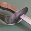 Luego, si seguimos mirando, veremos como en su parte superior este sable termina en forma de bola, la cual tiene gravada en relieve la figura de un gallo y en su extremo un remache que la sujeta a la espiga.