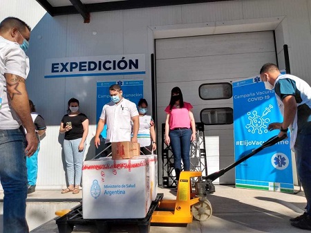 Este lunes, y minutos después de las 8, arribaron a la provincia las primeras dosis de la vacuna Sputnik V. Se trata de un primer envío de 3.850 vacunas y 7.700 dosis (cada vacuna posee dos dosis, cuya segunda debe aplicarse con una ventana de 28 días) realizado por Nación. Las mismas llegaron a la Base de Apoyo Logístico Resistencia del Ejército Argentino en camiones refrigerados, y desde allí se activará la distribución de las dosis a los diferentes puntos de la provincia.