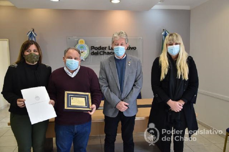 El presidente del Poder Legislativo, Hugo Sager y las diputadas Jéssica Ayala y Liliana Spoljaric reconocieron al doctor Nicolás Ivancovich, director de Emergencias Médicas del Chaco y a su equipo de colaboración, quienes el sábado 24 de marzo del 2021 asistieron el traslado de un recién nacido desde El Sauzalito al Hospital 4 de Junio de Sáenz Peña.