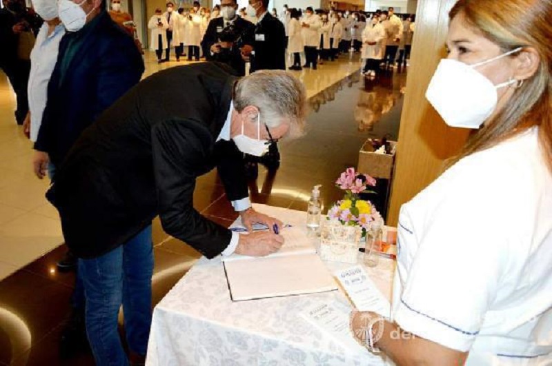 Desde el Centro de Convenciones Gala, donde tuvo lugar la ceremonia de graduación de la Universitaria Isalud, el titular del parlamento expresó su acompañamiento a estos nuevos profesionales, oportunidad en que destacó la labor diaria de enfermeras y enfermeros, y valoró el rol fundamental que, junto a otros profesionales, desempeñan frente al Covid-19.