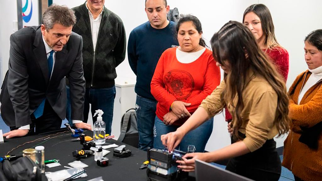 En un comunicado, Massa junto con el presidente del Ente Nacional de Comunicaciones (Enacom), Claudio Ambrosini, y otras autoridades, conversó con jóvenes recientemente capacitados en el desarrollo y tendido de redes de Internet, a través de un programa impulsado y financiado por el Enacom, y les anunció el compromiso de las empresas Telecom, Personal y Claro, para realizar entrevistas laborales.
