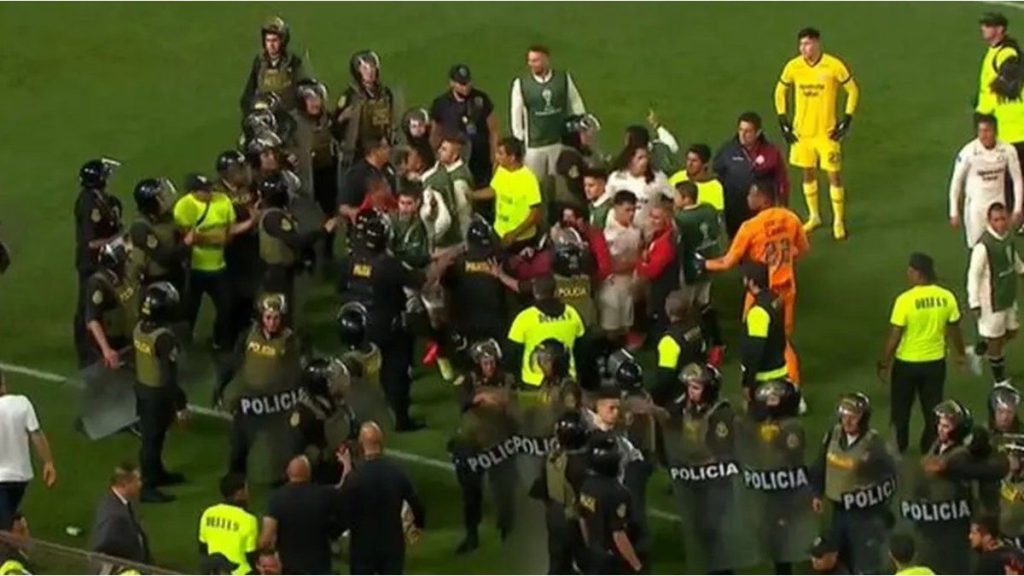 Los integrantes del banco de suplentes del conjunto ‘crema’ corrieron a golpear a Ryan, que fue defendido por sus compañeros, lo que motivó la intervención de la seguridad privada y la policía que rodeó al equipo brasileño.