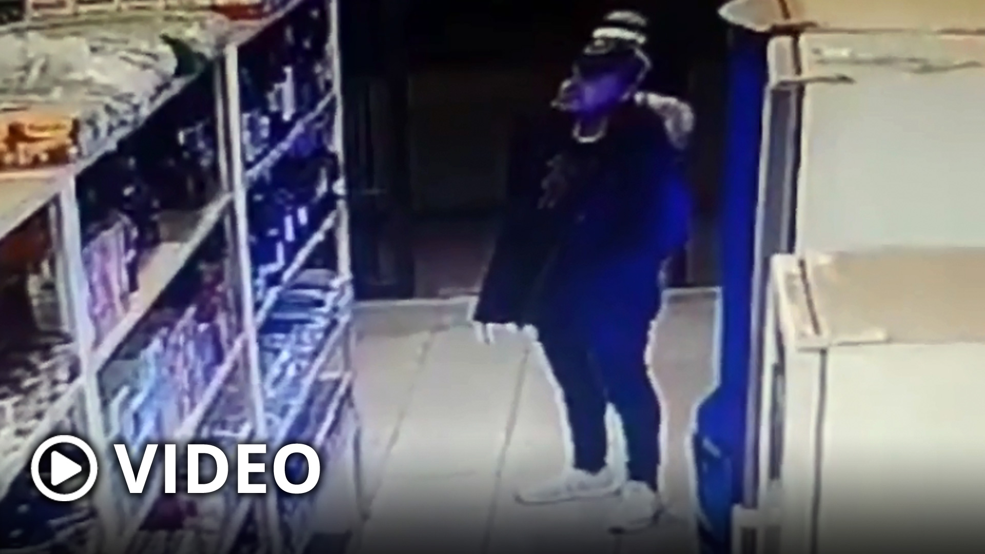 Las imágenes de una cámara de seguridad interna del local muestran el momento en que una persona llega hasta la puerta del supermercado y comienza a disparar, para luego darse a la fuga.