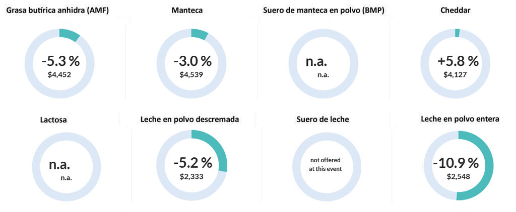 A este escenario a la baja también se sumaron los demás productos, como la leche en polvo descremada y la manteca. Salvo el cheddar, todos los productos lácteos comercializados reflejaron importantes retrocesos en sus valores respecto a hace dos semanas.