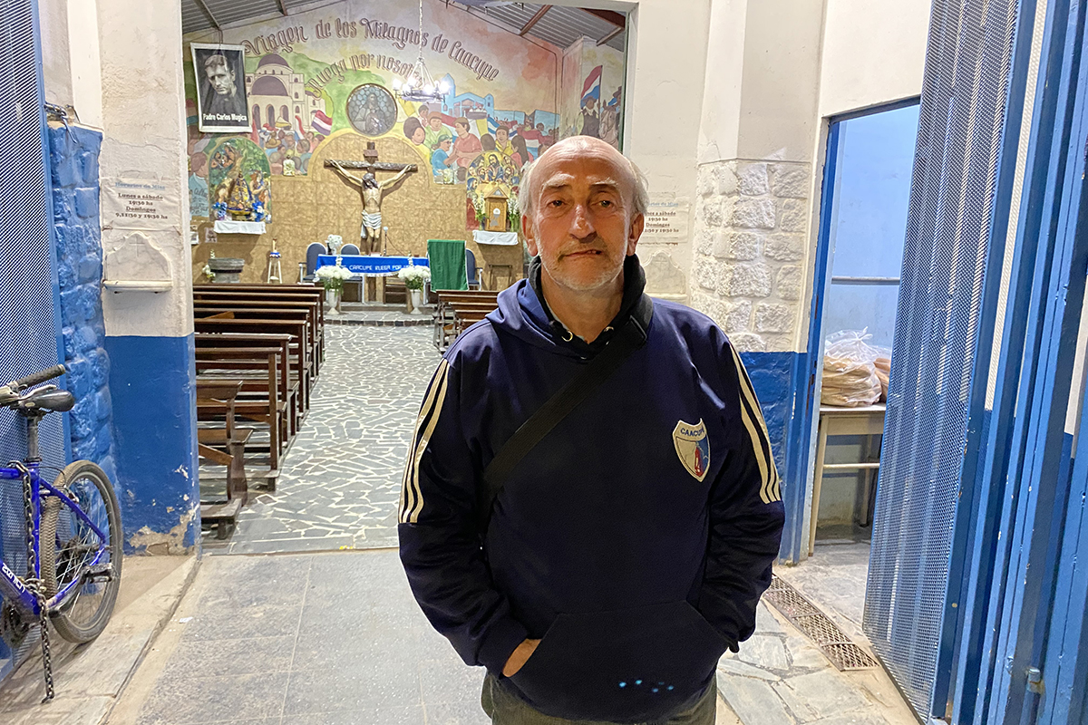 Pasan más patrulleros y motos oscuras acelerando por la calle Osvaldo Cruz. En esa arteria está encajada la Parroquia Virgen de Caacupé. El padre Lorenzo “Toto” de Vedia lo cruzo mientras prepara el altar para la misa postrera del día. El cura villero predica hace más de 20 años en la barriada. Está preocupado, quiere que baje la psicosis que corre sin freno entre los vecinos.