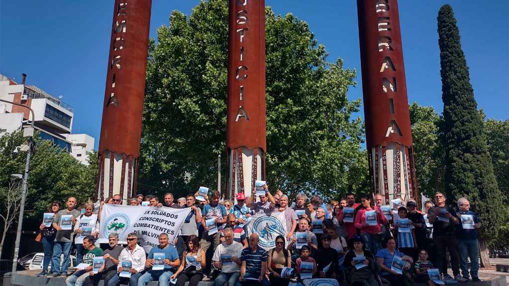 Integrantes del Centro de Ex Combatientes de las Islas Malvinas (Cecim) de La Plata realizaron este jueves una foto colectiva en el monumento emplazado en la Plaza Islas Malvinas de esa ciudad para expresar su respaldo a la candidatura presidencial de Sergio Massa y repudiaron la reivindicación de la figura y el accionar de la ex primera ministra inglesa Margaret Thatcher por parte del candidato de La Libertad Avanza (LLA), Javier Milei.