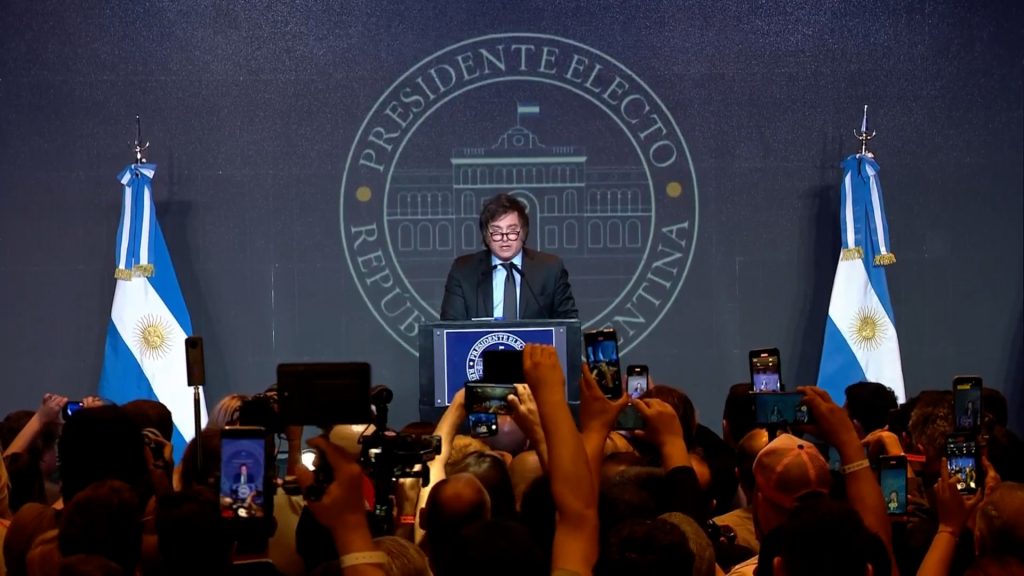 Sobre la situación económica que heredará, Milei agregó que el 10 de diciembre le va a contar a la gente “la cantidad de bombas que están plantadas y que vamos a hacer todo lo humanamente posible para evitar la hiperinflación. Es probable que tengamos que soportar 6 meses duros, pero que van a ser la base del despegue de Argentina”.