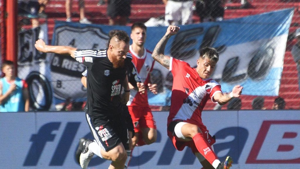 Aun con porcentajes de tenencia de pelota más bajos, Riestra asumió el protagonismo del partido con un juego más profundo que se expresó con nueve remates ofensivos, siete de ellos en el primer tiempo.