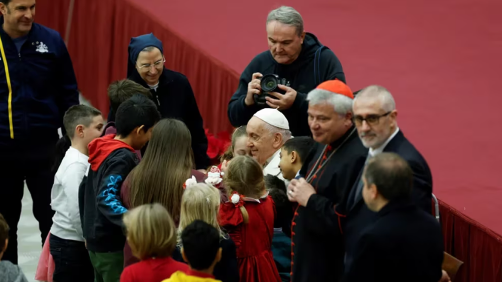 Más tarde, en un acto tradicional de la temporada navideña durante su discurso semanal en la Plaza de San Pedro, bendijo pequeñas estatuas del Niño Jesús sostenidas por niños que las colocarán en sus belenes en casa.