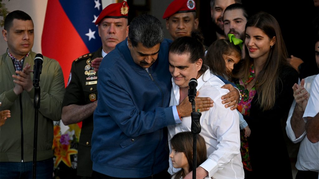 De allí fue trasladado al palacio presidencial de Miraflores, donde lo recibió Maduro. “Quiero darle la bienvenida a este hombre valiente; después de 1.280 días de secuestro, ha triunfado la verdad”, dijo el mandatario.