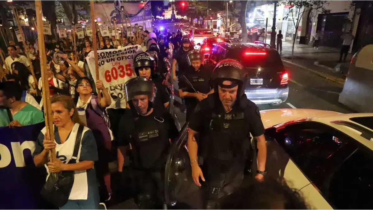 Durante la tarde, sindicatos de enfermeros marcharon al centro porteño acompañados por los efectivos que los acordonaron mientras caminaban. En las últimas horas se sumaron miembros del sindicato del Neumático, Inquilinos Agrupados, pero finalmente el mayor número de personas fueron autoconvocadas.