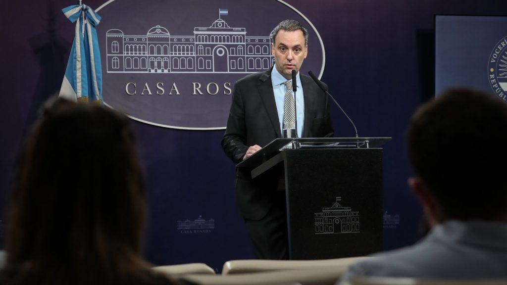 Adorni afirmó que, “cuando haya una identificación de pedido de coima o soborno” en el Congreso, “obviamente es una obligación legal denunciarlo y así lo hará” el presidente Javier Milei “en caso de que eso ocurra”.