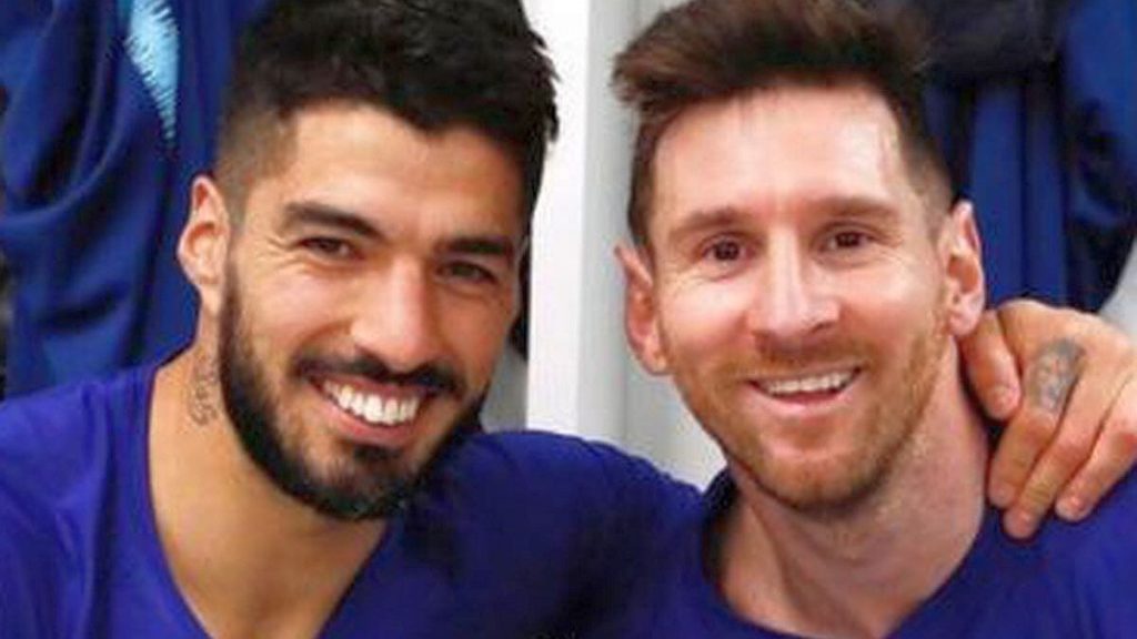 Suárez se reunió con sus excompañeros del Barcelona Lionel Messi, Sergio Busquets y Jordi Alba, con quienes ganó cuatro títulos de LaLiga en cinco años en España.