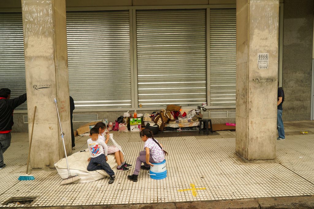 Si bien siempre están en distintos lugares de la Ciudad de Buenos Aires, la mayor parte del tiempo la pasan en Paseo Colón e Independencia, «porque ahí hay techo, además me siento más segura con mis hijos porque en ese lugar permanecemos con otras familias que están en la misma situación y nos cuidamos entre nosotros”.