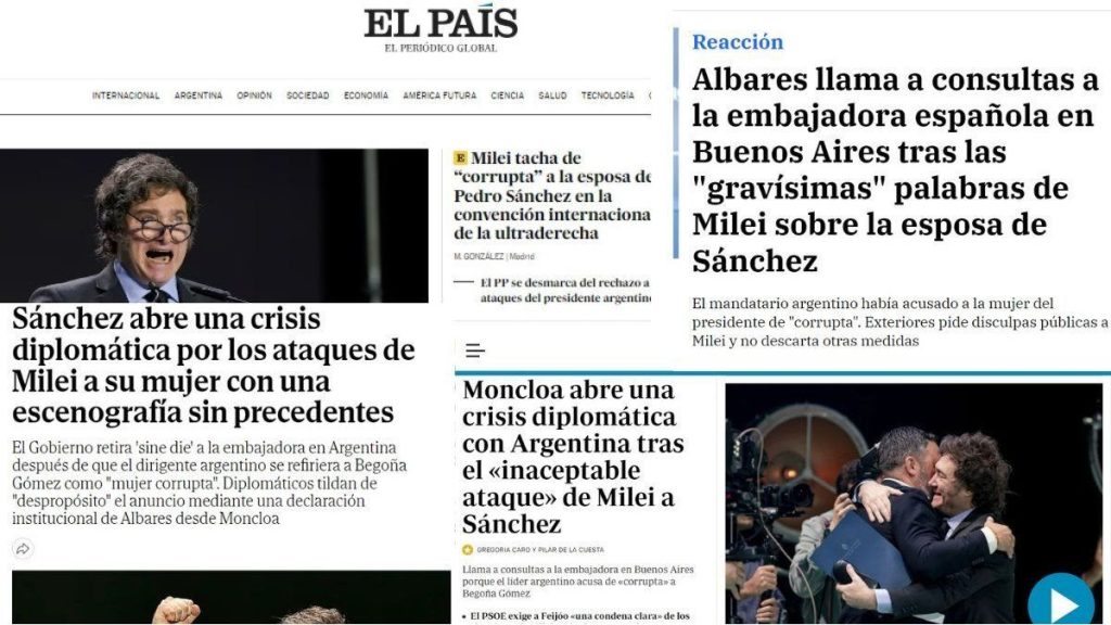 El País, uno de los principales medios de España, cuyo directorio está sospechado de arreglos con Sánchez para defender “ley de impunidad”, también relató los dichos del argentino. Incluyó un artículo en el que subraya que el partido Popular, que representa a la derecha tradicional de España, “se desmarca” del “rechazo” de los “ataques” de Milei al presidente de gobierno, con el que también mantiene un enfrentamiento.