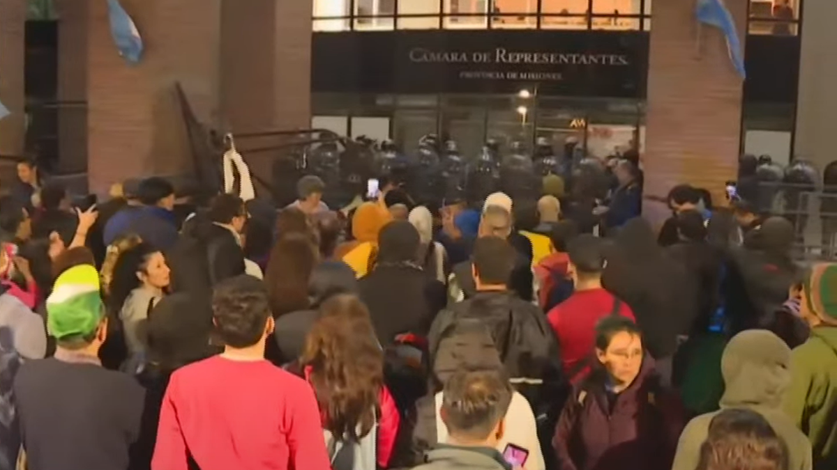 Enfrente de la Legislatura se congregaron diferentes sectores que están en conflicto por reclamos salariales. Hubo forcejeos entre manifestantes y fuerzas de seguridad federales y luego algunos de ellos ingresaron al edificio. Minutos después, un grupo de docentes se trasladó hasta la casa del Gobernador donde fueron reprimidos por fuerzas de seguridad.