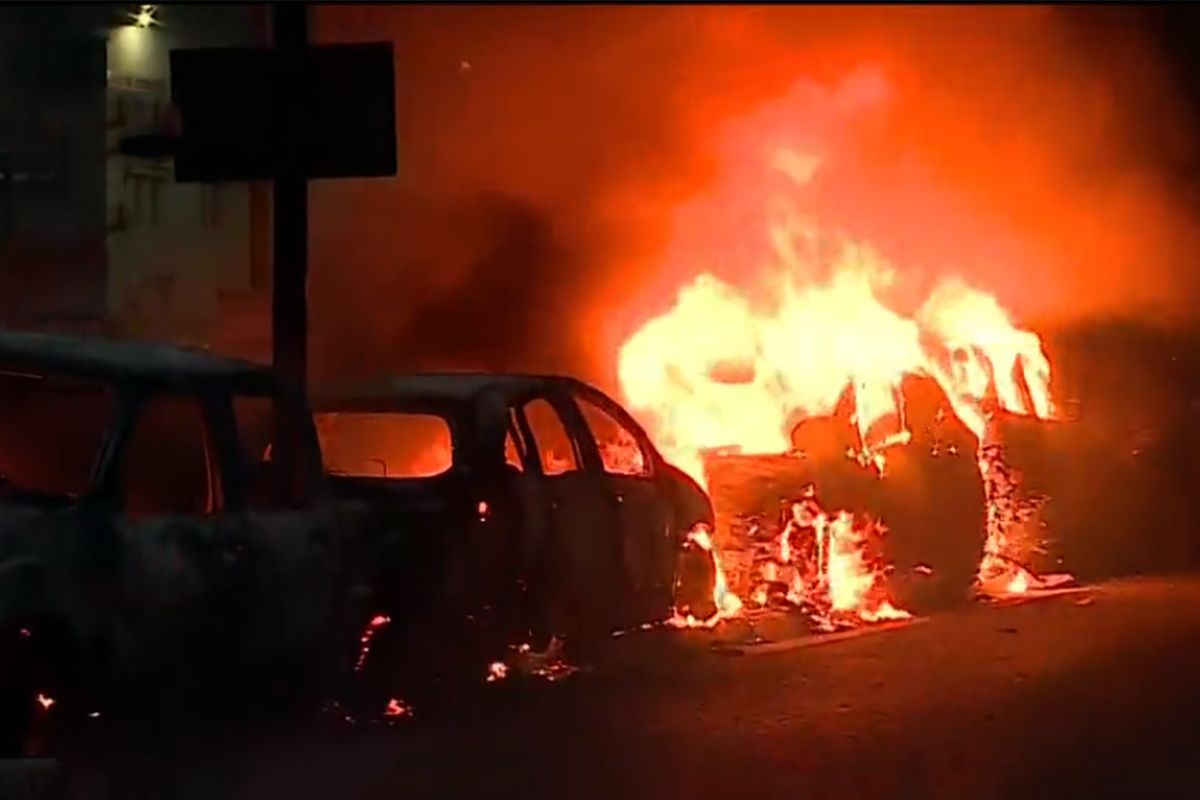 En la tarde de este lunes, los compañeros del trabajador se dirigieron a las puertas de la comisaría local y prendieron fuego un patrullero y al menos cuatro vehículos más.