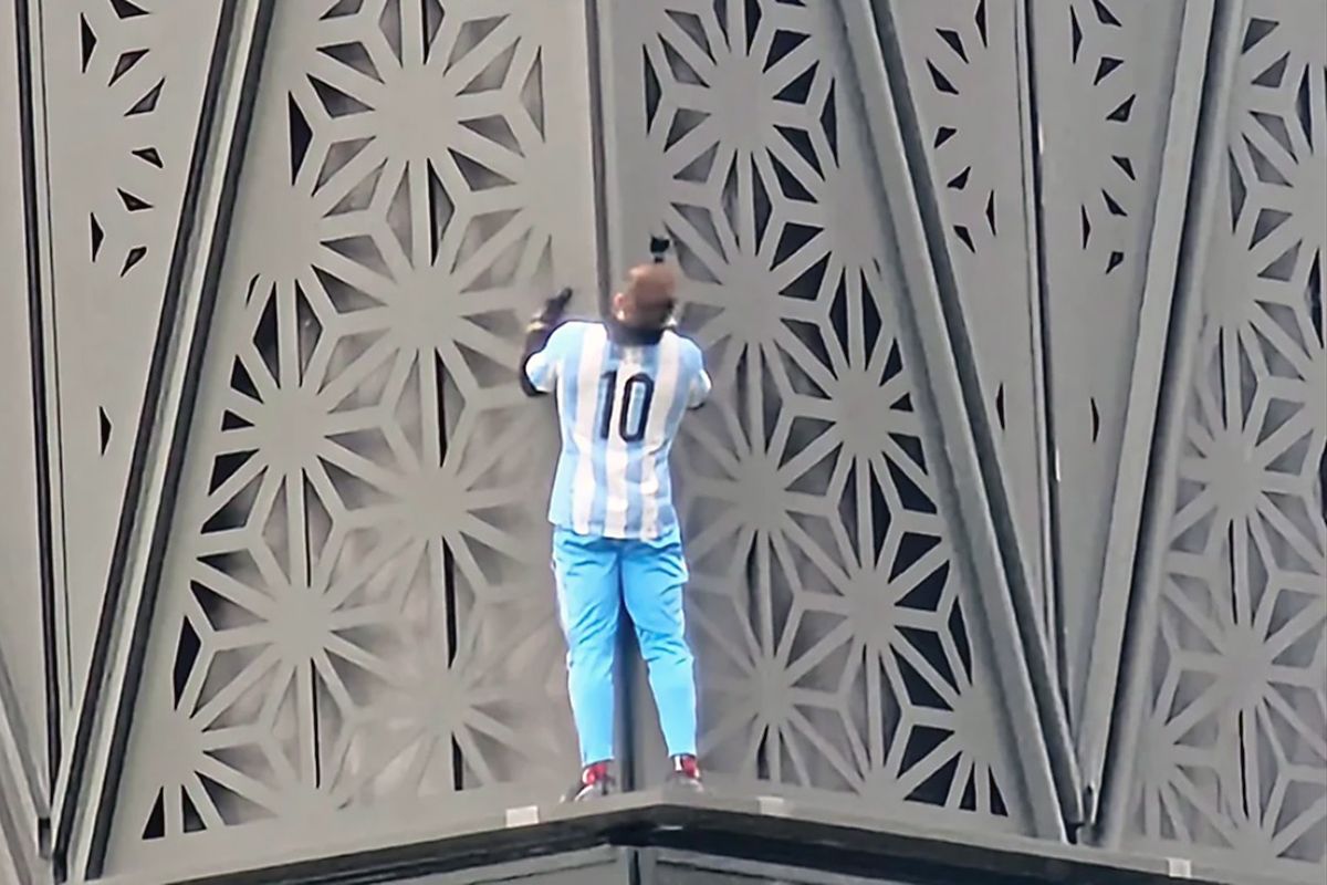 El hombre de 36 años, identificado como Marcin Banot, vestía una camiseta de la Selección Argentina con la 10 de Lionel Messi, sin ningún elemento de seguridad, cuando comenzó su proeza de subir el edificio de IRSA, donde funcionan empresas tecnológicas como Globant, situado en Della Paolera al 200, en el exclusivo barrio porteño.