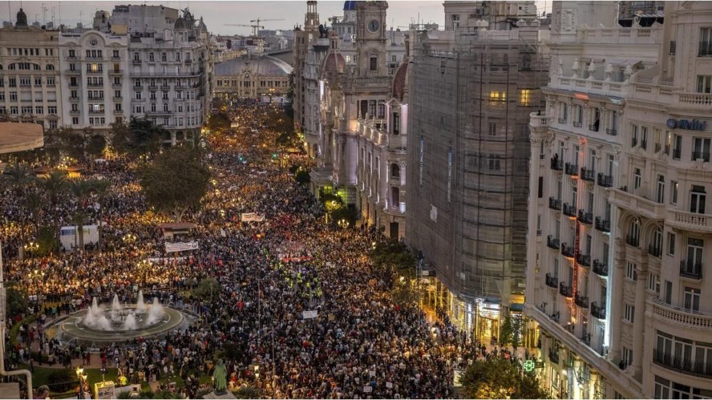 Varios de los manifestantes llevaban carteles que mostraban mensajes como ”¡Nos mataste!”, mientras que otros coreaban ”¡Mazón dimisión!”.