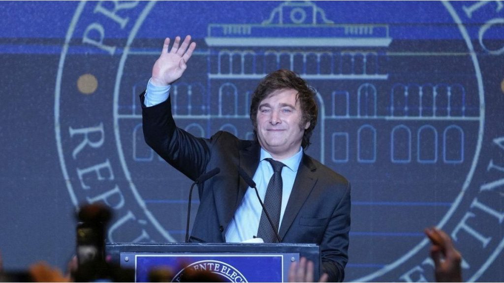 Javier Milei celebró en las redes sociales el aniversario de su triunfo en el balotaje frente a Sergio Massa by reporadmin 12 meses ago Compartir en FacebookCompartir en Twitter El Presidente compartió un video en el que recuerda la gesta que lo llevó a asumir al frente de Ejecutivo. Fuente Ambito Categories: Politica Tags: politicaReporte 24 Related Content Continúa la lucha por instalar un espacio de memoria en donde funcionó El Vesubio By reporadmin 4 noviembre, 2025 Traspaso de funciones: Manuel Adorni mantiene una reunión con Guillermo Francos By reporadmin 4 noviembre, 2025 Diego Santilli negó haber sido candidato testimonial y aseguró que se sorprendió con el llamado de Javier Milei By reporadmin 3 noviembre, 2025 Manuel Adorni, sobre la reforma laboral: "Va a ser revolucionaria" By reporadmin 3 noviembre, 2025 Kicillof: “El Gobierno nacional le robó al pueblo de la provincia de Buenos Aires” By reporadmin 3 noviembre, 2025