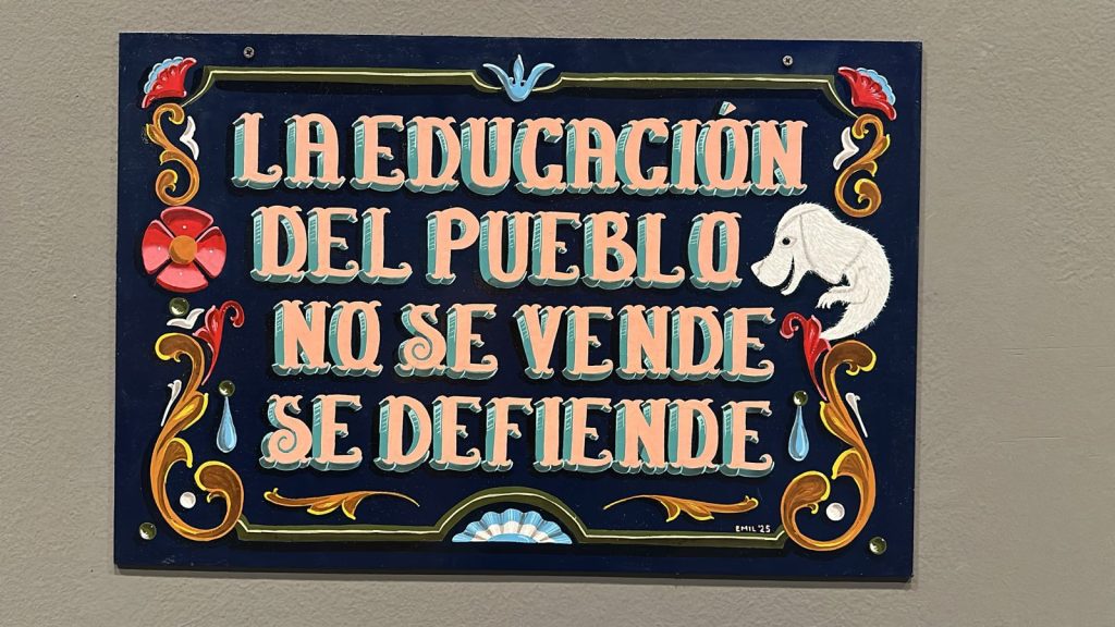 En diálogo con Tiempo, la gestora cultural asociación de Fileteadores, Ayelen Fagiani, contó: “Horas antes de la inauguración de la exposición nos informan que debemos bajar las obras con contenido político porque hieren la susceptibilidad del Gobierno Nacional, puntualmente las referidas a la Educación Pública y al conflicto de Gaza”.