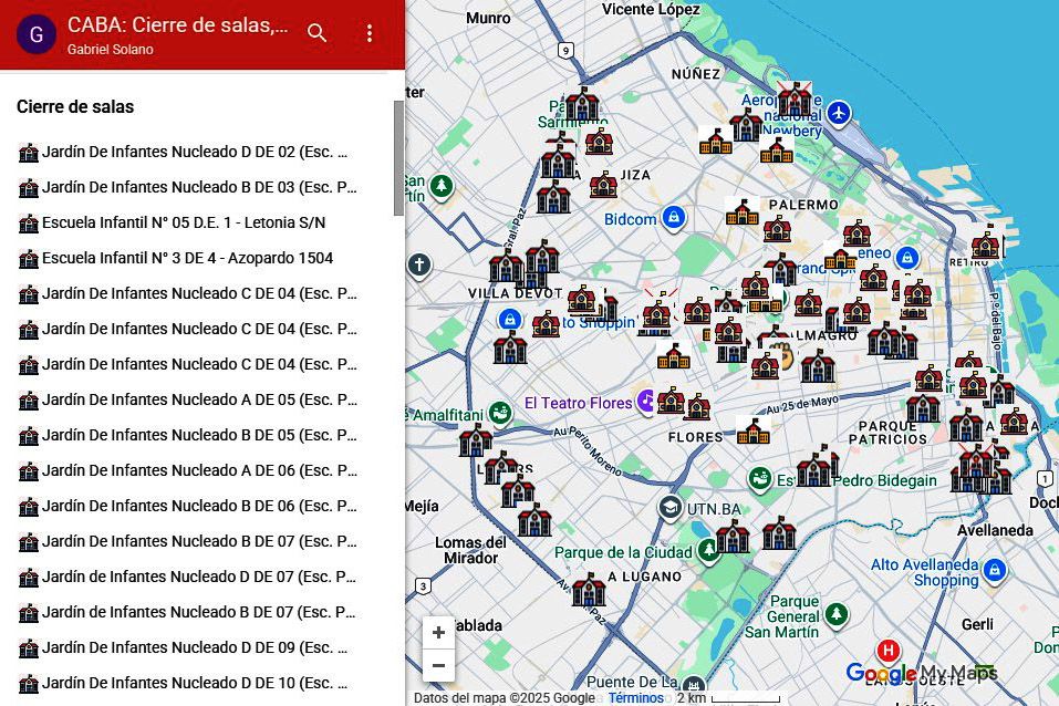 Tras la respuesta a un pedido de informes solicitado por el diputado porteño Gabriel Solano, crearon un mapa con los cierres de grados, salas de jardines y cursos que está ejecutando el gobierno de Macri. Un diagrama que sirve para visibilizar en el territorio porteño como avanza el desmantelamiento de la educación pública y gratuita en todo el distrito.