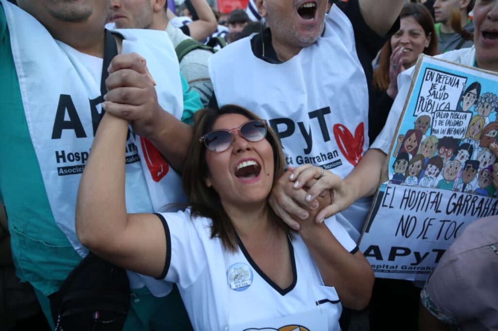 Desde el sur postrero de la ciudad llegó marchando con sus cumpas del hospi la enfermera Georgina Duarte. Trece años cuidando a las pibas y pibes acredita en su legajo la señora de sonrisa luminosa. Ni los sueldos de miseria, ni el destrato del gobierno derechoso, ni los vetos del presidente le borraron la sonrisa cálida a la hora de dar la batalla: “Venimos de dos años durísimos, para los trabajadores y los pacientes. Sin aumentos, sin insumos, pero con unas ganas terribles de defender la salud pública”. Para la enfermera, el gobierno es cruel: “Al final la casta éramos los de abajo. Se la agarraron hasta con los pacientes, los chicos y chicas que no pueden defenderse. No nos quedamos de brazos cruzados, por eso este día es histórico, es el triunfo de los que peleamos por los derechos del pueblo y en contra del odio”. Se abraza Georgina con sus compañeras ataviadas de blanco frente al Parlamento, llora y cura con la palabra: “Así, todas y todos unidos, sabemos que se los puede frenar, hay que pelear”.