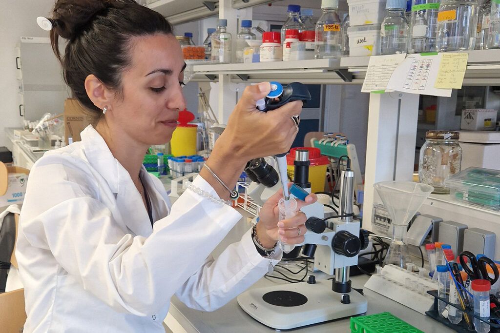 -En realidad me trajo el corazón, pero desde lo sentimental. A Italia vinimos como un proyecto de familia, con mi marido y con mi hija, él también es investigador, trabajábamos juntos en el mismo instituto, en La Plata, en el Centro de Investigaciones Cardiovasculares, y decidimos venir para acá porque la Universidad de Padua tiene un departamento que es muy fuerte en lo que nosotros estábamos haciendo. Estaba muy bueno hacer ese paso. Él aplicó una beca, ganó un subsidio, y dije bueno, algo voy a encontrar allá’. Tuve la buena suerte de conocer a una científica de acá, estando aún en Argentina, que estaba buscando una persona con un perfil bastante parecido al mío, pero ella trabajaba el cerebro, con enfermedades neurodegenerativas, y dije ‘sí, me animo un poquito a aprender una cosa nueva’. Así que comenzamos a trabajar con ella en una enfermedad que se llama ‘paraplegia hereditaria’, que se da por distintas mutaciones en un montón de genes, y empezamos a estudiar cómo esas mutaciones afectan, en particular, la forma de una organela, que es uno de los componentes que están adentro de una célula, en este caso de las neuronas. Un poco a raíz de ese proyecto, aprendiendo un montón sobre neuronas, que era algo en lo que nunca había trabajado, en enfermedades neurodegenerativas (esta es una enfermedad que afecta mucho a niños), aprendí a trabajar con otra sensibilidad.