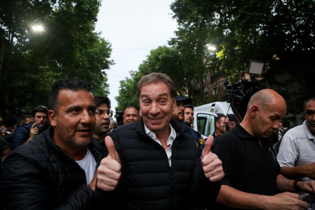 Antes de la llegada de Milei y sus candidatos hubo algunos empujones y corridas entre los militantes libertarios y un reducido grupo de manifestantes que concurrieron a las inmediaciones de la céntrica Plaza de los Aviadores para protestar contra el Presidente, pero la situación no pasó a mayores.